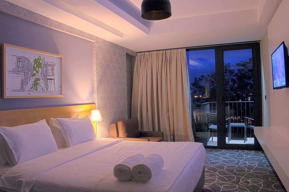 This air-conditioned twin room is consisted of of a flat-screen TV with satellite channels, a private bathroom as well as a balcony with city views.